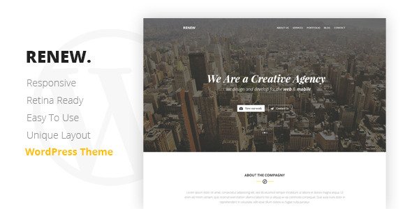 RENEW – Creative One Page WordPress Theme is a stylish, responsive, and modern WordPress theme designed for creative professionals, agencies, startups, and freelancers who want to showcase their work in a sleek one‑page format. With bold visuals, smooth scrolling, and customizable sections, RENEW delivers a polished online presence that emphasizes creativity and storytelling.
