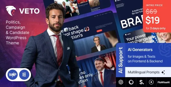 Veto—Politics, Campaign & Candidate WordPress Theme is a premium, modern, and fully responsive WordPress theme designed for political campaigns, candidates, parties, activists, and organizations. With its professional layouts, event management tools, Elementor customization, and WooCommerce integration, Veto provides a complete solution for promoting political agendas, managing campaigns, and engaging supporters online.