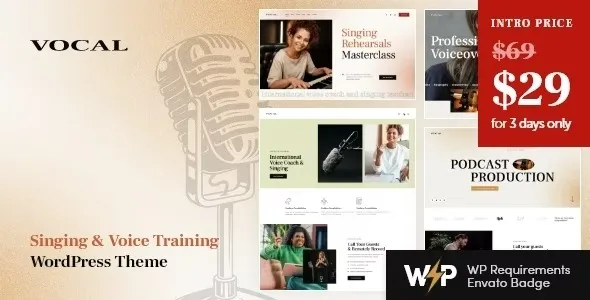 Vocal—WordPress Theme is a premium, stylish, and fully responsive WordPress theme designed for music bands, singers, DJs, recording studios, event organizers, and entertainment businesses. With its bold layouts, audio player integration, WooCommerce support, and SEO‑friendly structure, Vocal provides a complete solution for showcasing music, promoting events, and engaging fans online.
